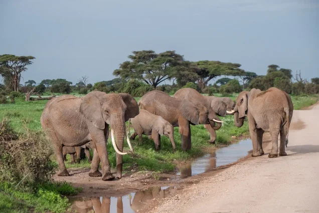 The safari concludes in Amboseli National Park, famous for its large elephant herds and breathtaking views of Mount Kilimanjaro, Africa’s highest peak. Game drives in Amboseli offer unique photographic opportunities as wildlife roams against the dramatic backdrop of the snow-capped mountain. The park’s open plains, swamps, and observation points provide excellent year-round wildlife viewing.